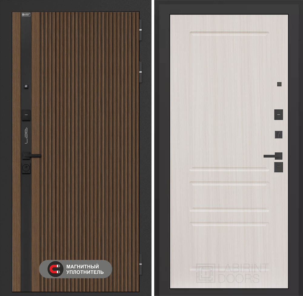 Фурнитура в черном цвете: Броненакладка врезная, накладка со шторкой, глазок , дверная ручка, ночная задвижка. Цилиндр ключ-вертушка (производитель не регламентируется), регулируемый эксцентрик.
