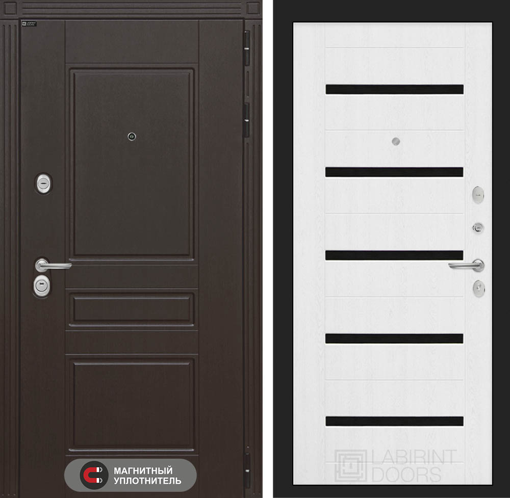 Броненакладка врезная, накладка со шторкой, глазок , дверная ручка, ночная задвижка, цилиндр ключ-вертушка (производитель не регламентируется), регулируемый эксцентрик.