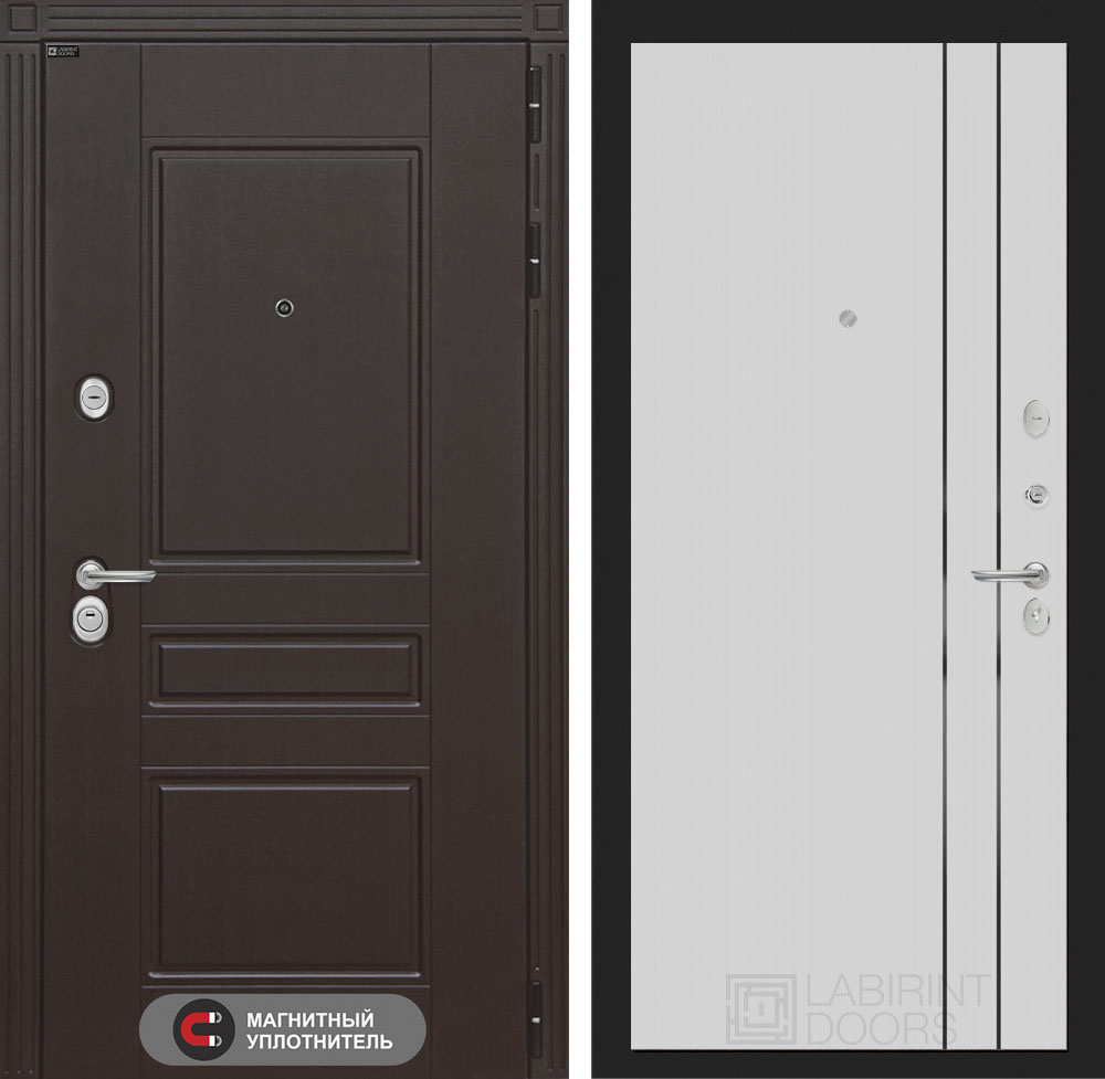 Броненакладка врезная, накладка со шторкой, глазок , дверная ручка, ночная задвижка, цилиндр ключ-вертушка (производитель не регламентируется), регулируемый эксцентрик.