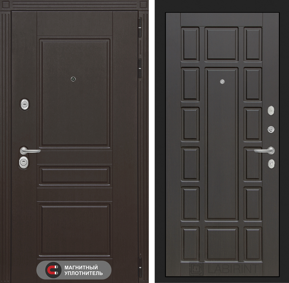 Броненакладка врезная, накладка со шторкой, глазок , дверная ручка, ночная задвижка, цилиндр ключ-вертушка (производитель не регламентируется), регулируемый эксцентрик.