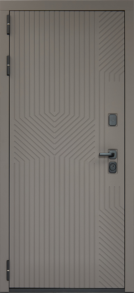 Входная дверь Гранит Нанорельеф – это воплощение современного дизайна и передовых технологий в мире входных дверей. Элегантное внешнее покрытие цвета Смоки софт с изысканным геометрическим рисунком создает неповторимый визуальный эффект, который притягивает взгляд и задает тон всему облику входной группы.