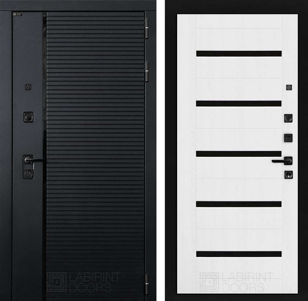 Фурнитура в черном цвете: Броненакладка врезная, накладка со шторкой, глазок , дверная ручка, ночная задвижка. Цилиндр ключ-вертушка (производитель не регламентируется), регулируемый эксцентрик.