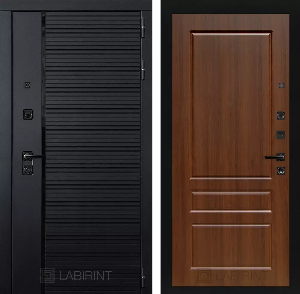 Фурнитура в черном цвете: Броненакладка врезная, накладка со шторкой, глазок , дверная ручка, ночная задвижка. Цилиндр ключ-вертушка (производитель не регламентируется), регулируемый эксцентрик.