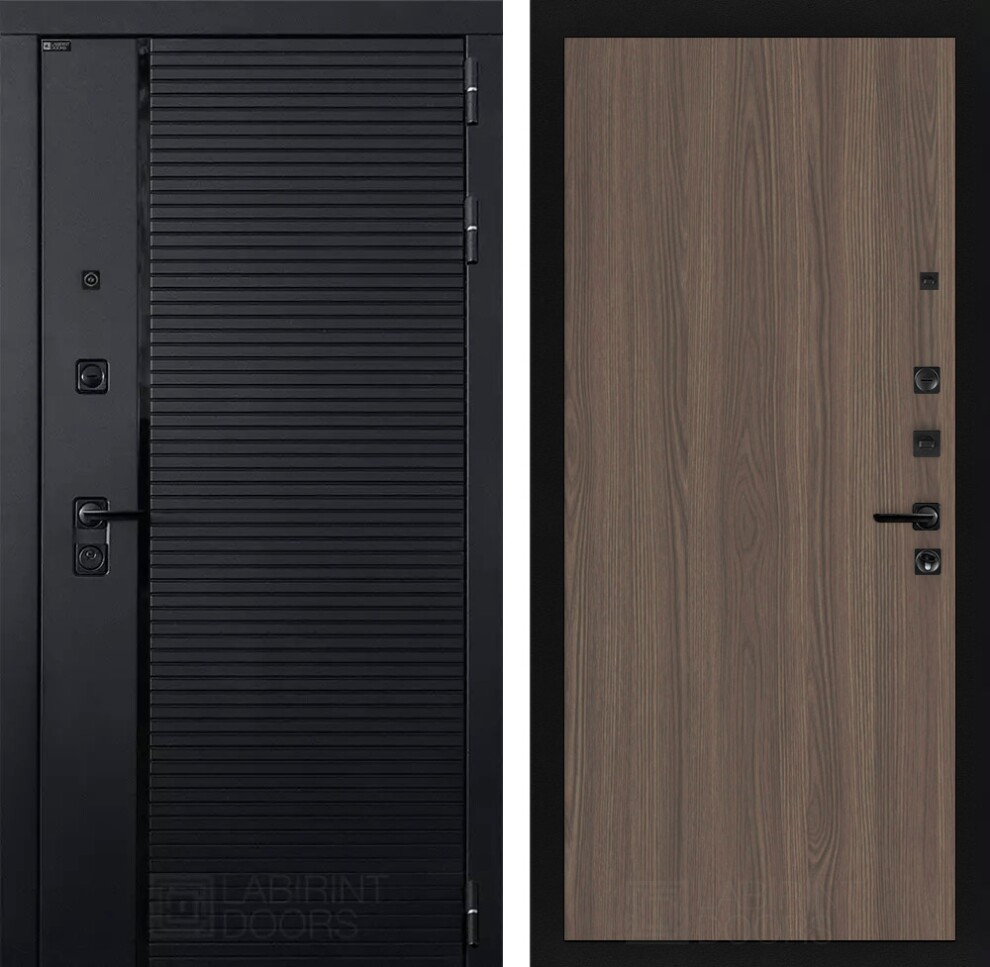 Фурнитура в черном цвете: Броненакладка врезная, накладка со шторкой, глазок , дверная ручка, ночная задвижка. Цилиндр ключ-вертушка (производитель не регламентируется), регулируемый эксцентрик.