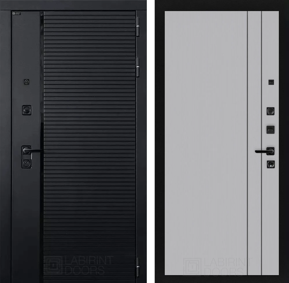Фурнитура в черном цвете: Броненакладка врезная, накладка со шторкой, глазок , дверная ручка, ночная задвижка. Цилиндр ключ-вертушка (производитель не регламентируется), регулируемый эксцентрик.