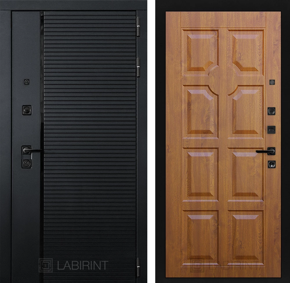 Фурнитура в черном цвете: Броненакладка врезная, накладка со шторкой, глазок , дверная ручка, ночная задвижка. Цилиндр ключ-вертушка (производитель не регламентируется), регулируемый эксцентрик.