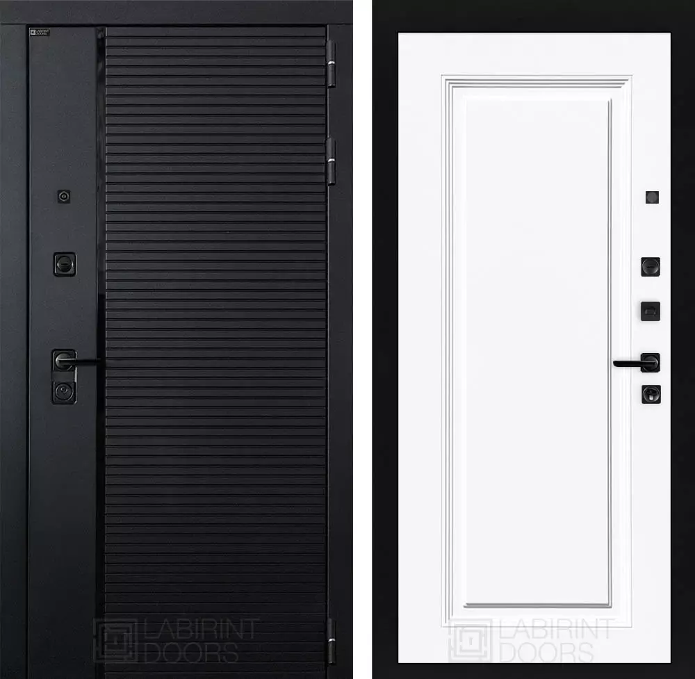 Фурнитура в черном цвете: Броненакладка врезная, накладка со шторкой, глазок , дверная ручка, ночная задвижка. Цилиндр ключ-вертушка (производитель не регламентируется), регулируемый эксцентрик.