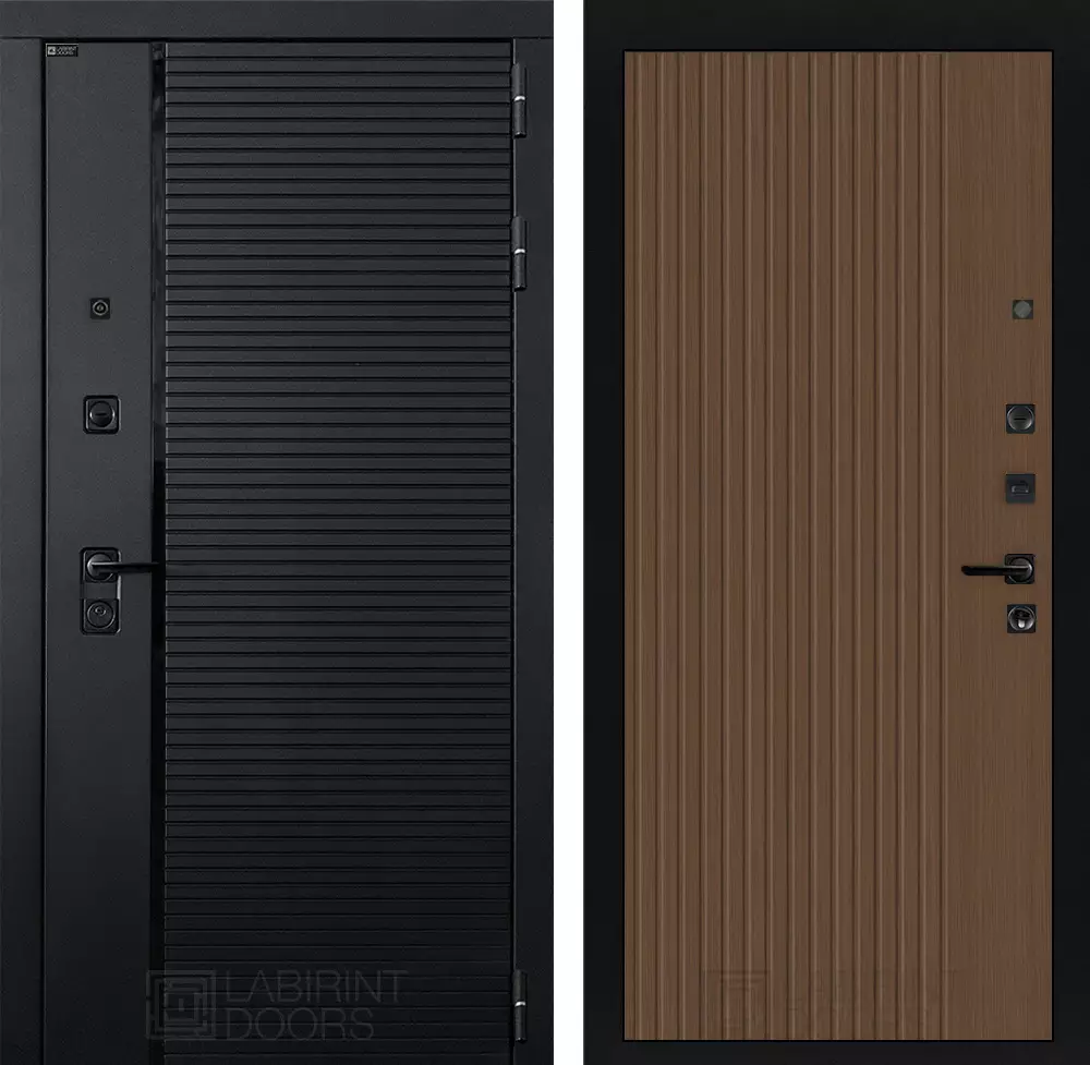 - Фурнитура в черном цвете: Броненакладка врезная, накладка со шторкой, глазок , дверная ручка, ночная задвижка. Цилиндр ключ-вертушка (производитель не регламентируется), регулируемый эксцентрик.