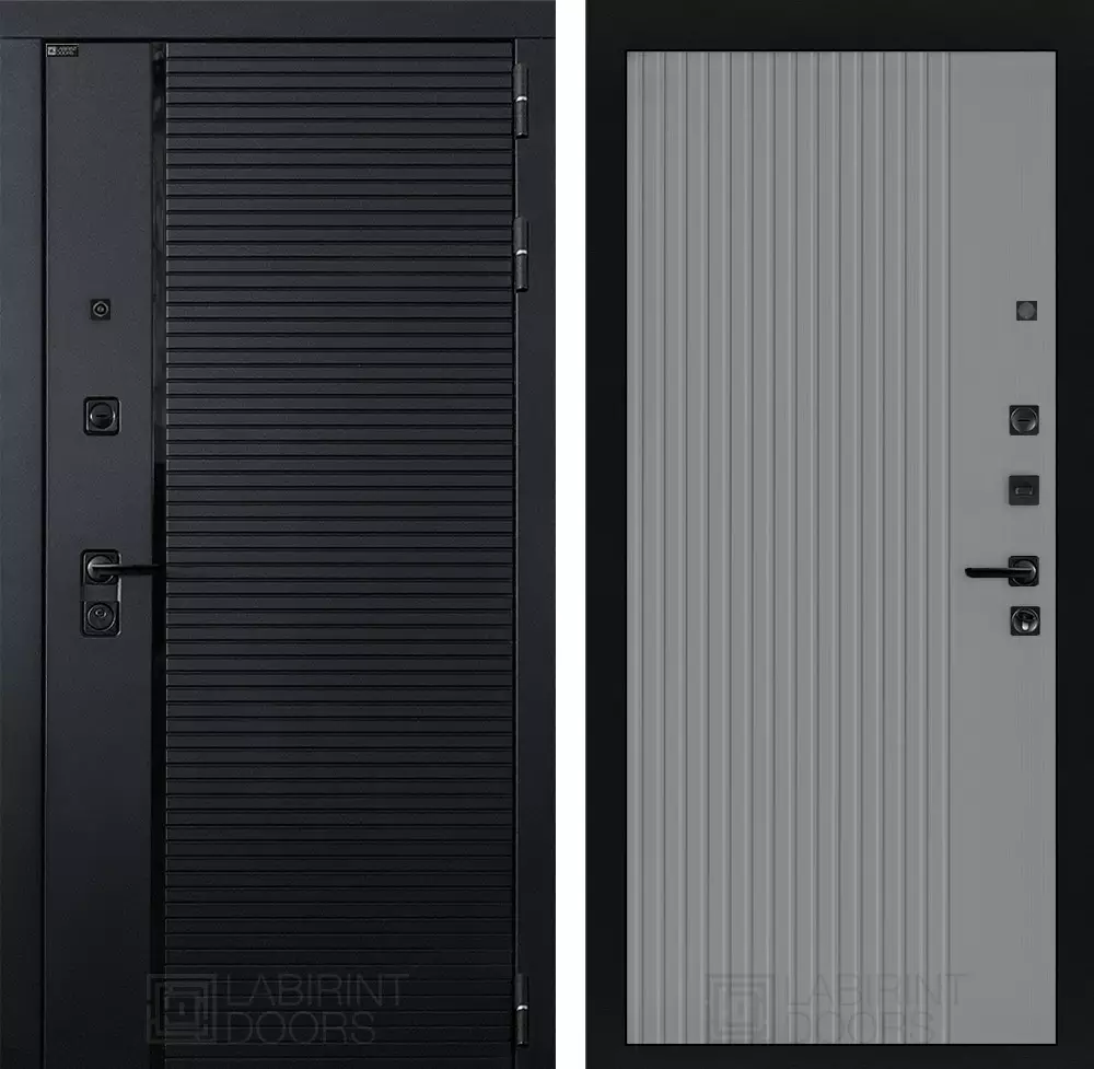 Фурнитура в черном цвете: Броненакладка врезная, накладка со шторкой, глазок , дверная ручка, ночная задвижка. Цилиндр ключ-вертушка (производитель не регламентируется), регулируемый эксцентрик.