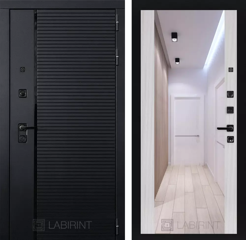 Фурнитура в черном цвете: Броненакладка врезная, накладка со шторкой, глазок , дверная ручка, ночная задвижка. Цилиндр ключ-вертушка (производитель не регламентируется), регулируемый эксцентрик.