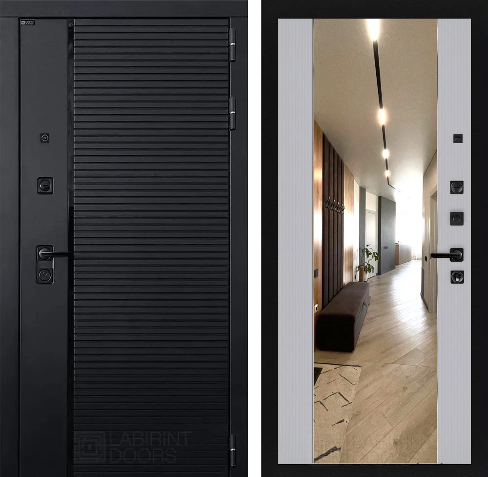 Фурнитура в черном цвете: Броненакладка врезная, накладка со шторкой, глазок , дверная ручка, ночная задвижка. Цилиндр ключ-вертушка (производитель не регламентируется), регулируемый эксцентрик.
