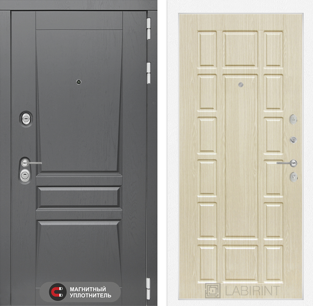 Броненакладка врезная, накладка со шторкой, глазок , дверная ручка, ночная задвижка, цилиндр ключ-вертушка (производитель не регламентируется), регулируемый эксцентрик.