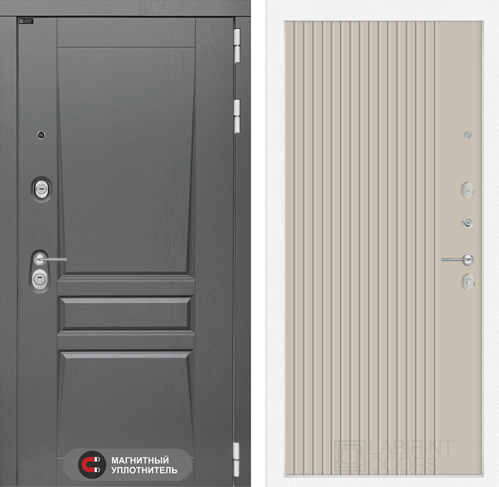 Броненакладка врезная, накладка со шторкой, глазок , дверная ручка, ночная задвижка, цилиндр ключ-вертушка (производитель не регламентируется), регулируемый эксцентрик.