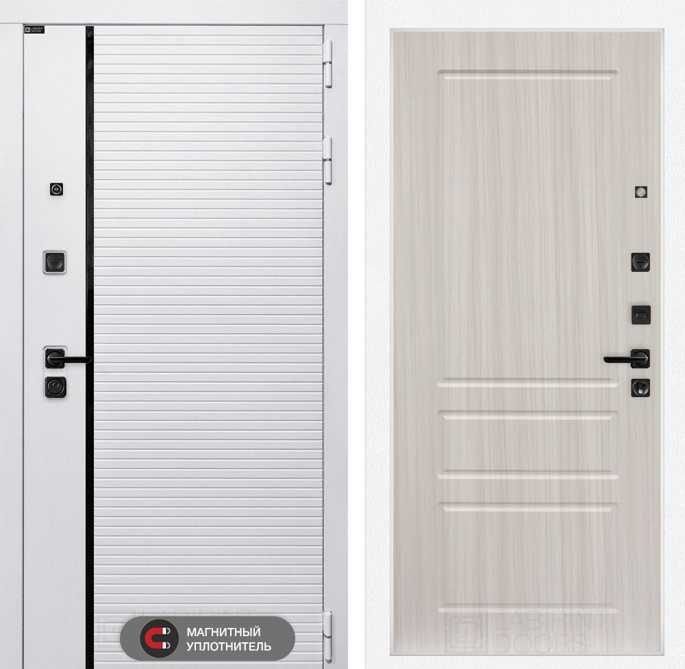 - Фурнитура в черном цвете: Броненакладка врезная, накладка со шторкой, глазок , дверная ручка, ночная задвижка. Цилиндр ключ-вертушка (производитель не регламентируется), регулируемый эксцентрик.