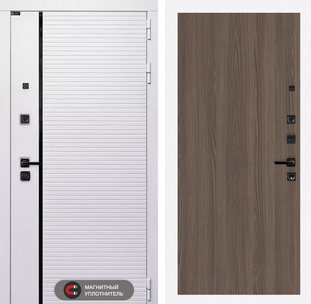 Фурнитура в черном цвете: Броненакладка врезная, накладка со шторкой, глазок , дверная ручка, ночная задвижка. Цилиндр ключ-вертушка (производитель не регламентируется), регулируемый эксцентрик.