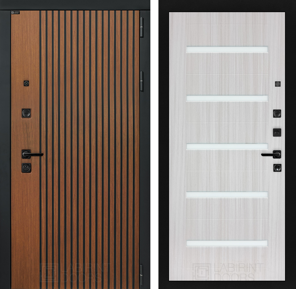 Фурнитура в черном цвете: Броненакладка врезная, накладка со шторкой, глазок , дверная ручка, ночная задвижка. Цилиндр ключ-вертушка (производитель не регламентируется), регулируемый эксцентрик.