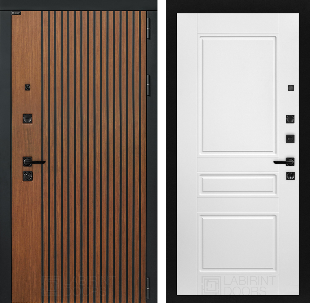 Фурнитура в черном цвете: Броненакладка врезная, накладка со шторкой, глазок , дверная ручка, ночная задвижка. Цилиндр ключ-вертушка (производитель не регламентируется), регулируемый эксцентрик.