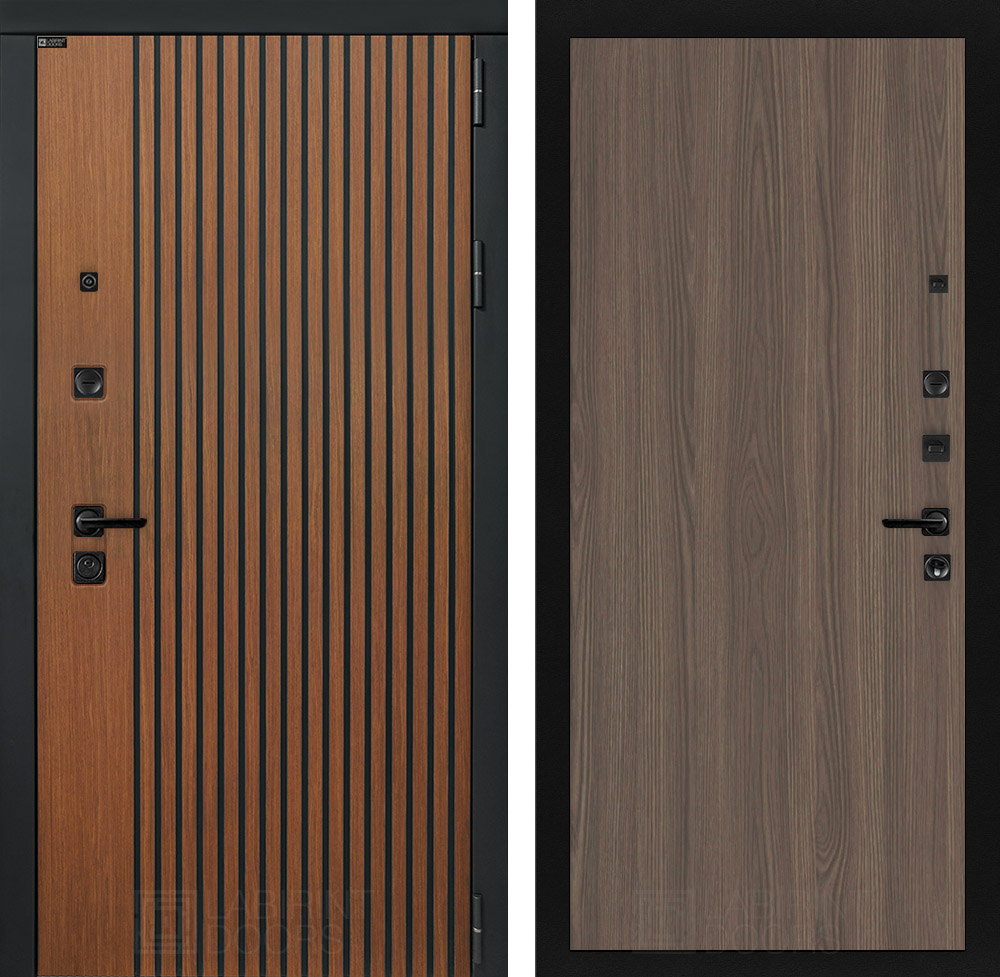 Фурнитура в черном цвете: Броненакладка врезная, накладка со шторкой, глазок , дверная ручка, ночная задвижка. Цилиндр ключ-вертушка (производитель не регламентируется), регулируемый эксцентрик.