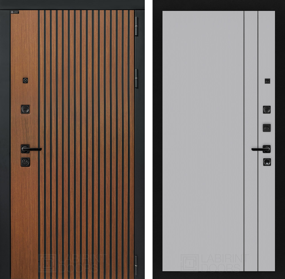 Фурнитура в черном цвете: Броненакладка врезная, накладка со шторкой, глазок , дверная ручка, ночная задвижка. Цилиндр ключ-вертушка (производитель не регламентируется), регулируемый эксцентрик.