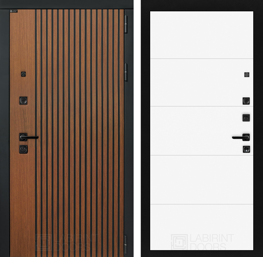Фурнитура в черном цвете: Броненакладка врезная, накладка со шторкой, глазок , дверная ручка, ночная задвижка. Цилиндр ключ-вертушка (производитель не регламентируется), регулируемый эксцентрик.