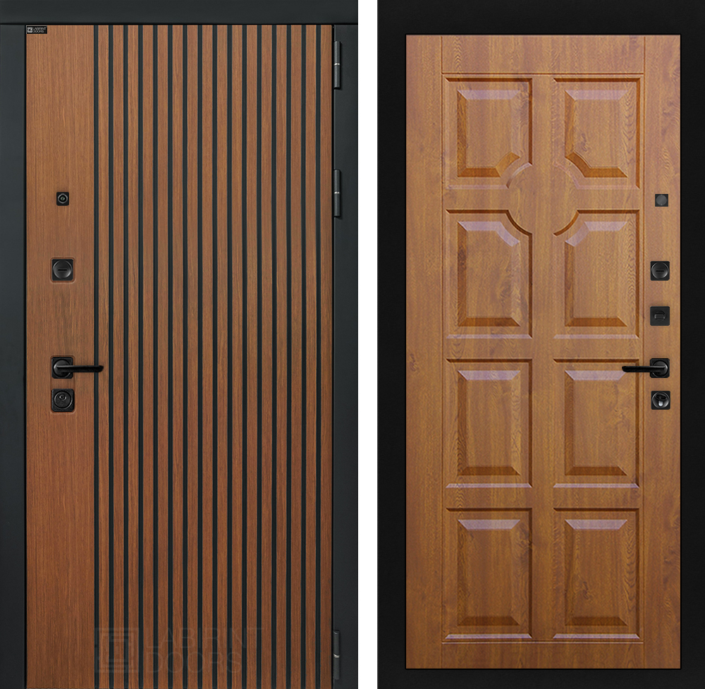 Фурнитура в черном цвете: Броненакладка врезная, накладка со шторкой, глазок , дверная ручка, ночная задвижка. Цилиндр ключ-вертушка (производитель не регламентируется), регулируемый эксцентрик.