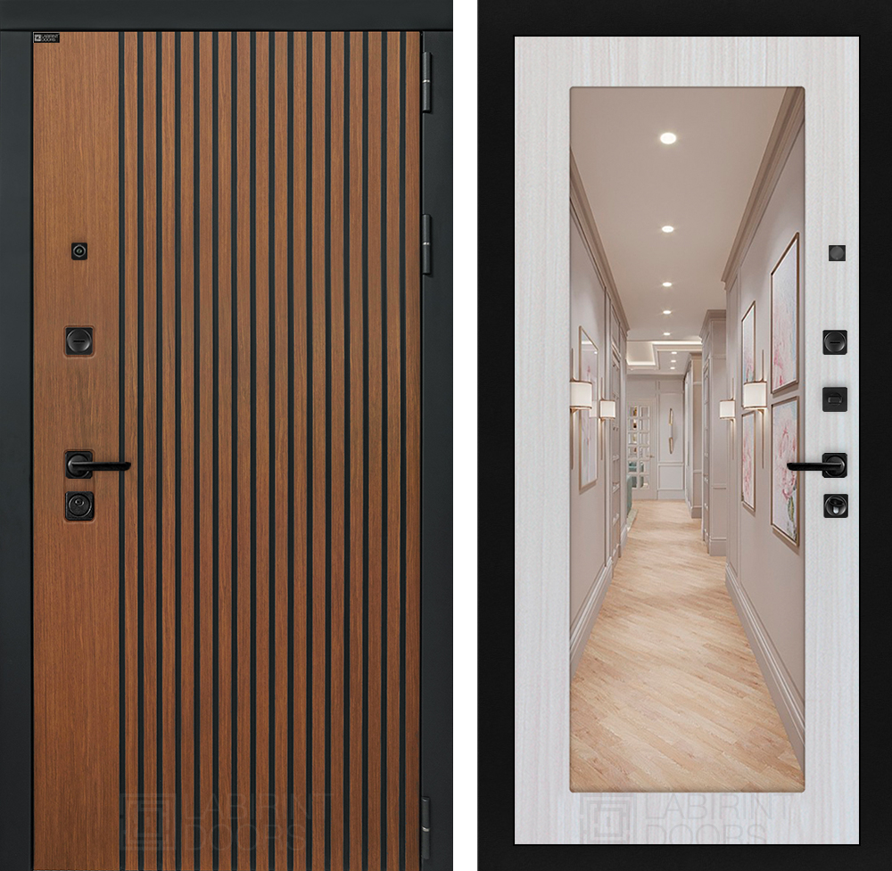 Фурнитура в черном цвете: Броненакладка врезная, накладка со шторкой, глазок , дверная ручка, ночная задвижка. Цилиндр ключ-вертушка (производитель не регламентируется), регулируемый эксцентрик.