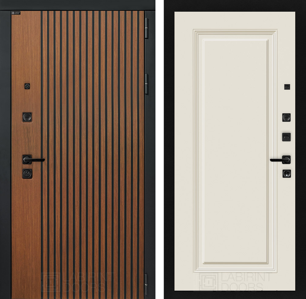 Фурнитура в черном цвете: Броненакладка врезная, накладка со шторкой, глазок , дверная ручка, ночная задвижка. Цилиндр ключ-вертушка (производитель не регламентируется), регулируемый эксцентрик.