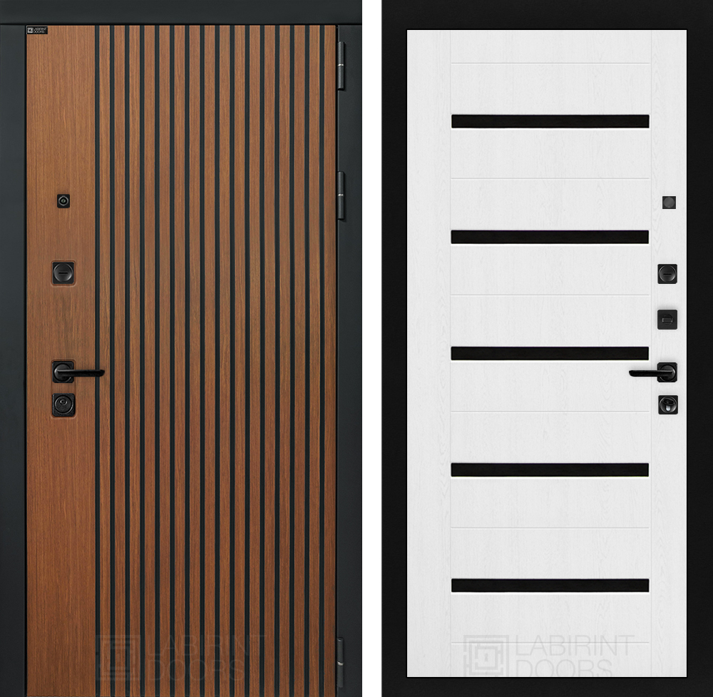 Фурнитура в черном цвете: Броненакладка врезная, накладка со шторкой, глазок , дверная ручка, ночная задвижка. Цилиндр ключ-вертушка (производитель не регламентируется), регулируемый эксцентрик.