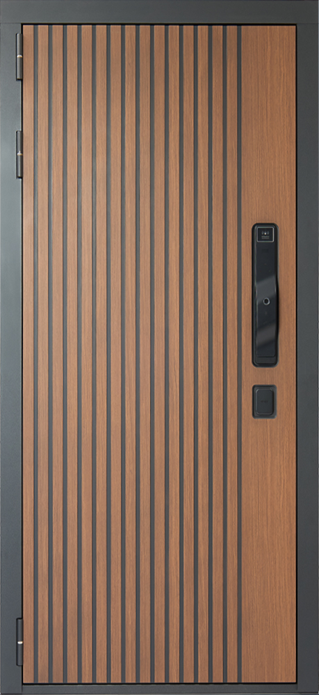 Гранит Шторм Смарт – это воплощение элегантности и современных технологий в каждой детали.Одним из главных преимуществ этой двери является ее внешняя отделка. Она выполнена из МДФ-панели цвета темный дуб, которая придает двери элегантный и современный вид. Вертикальные черные полосы на двери добавляют ей изысканности и делают акцент на ее форме.. Внутренняя сторона двери представлена широким выбором вариантов отделки из МДФ, что позволяет создать идеальное сочетание с любым интерьером.
