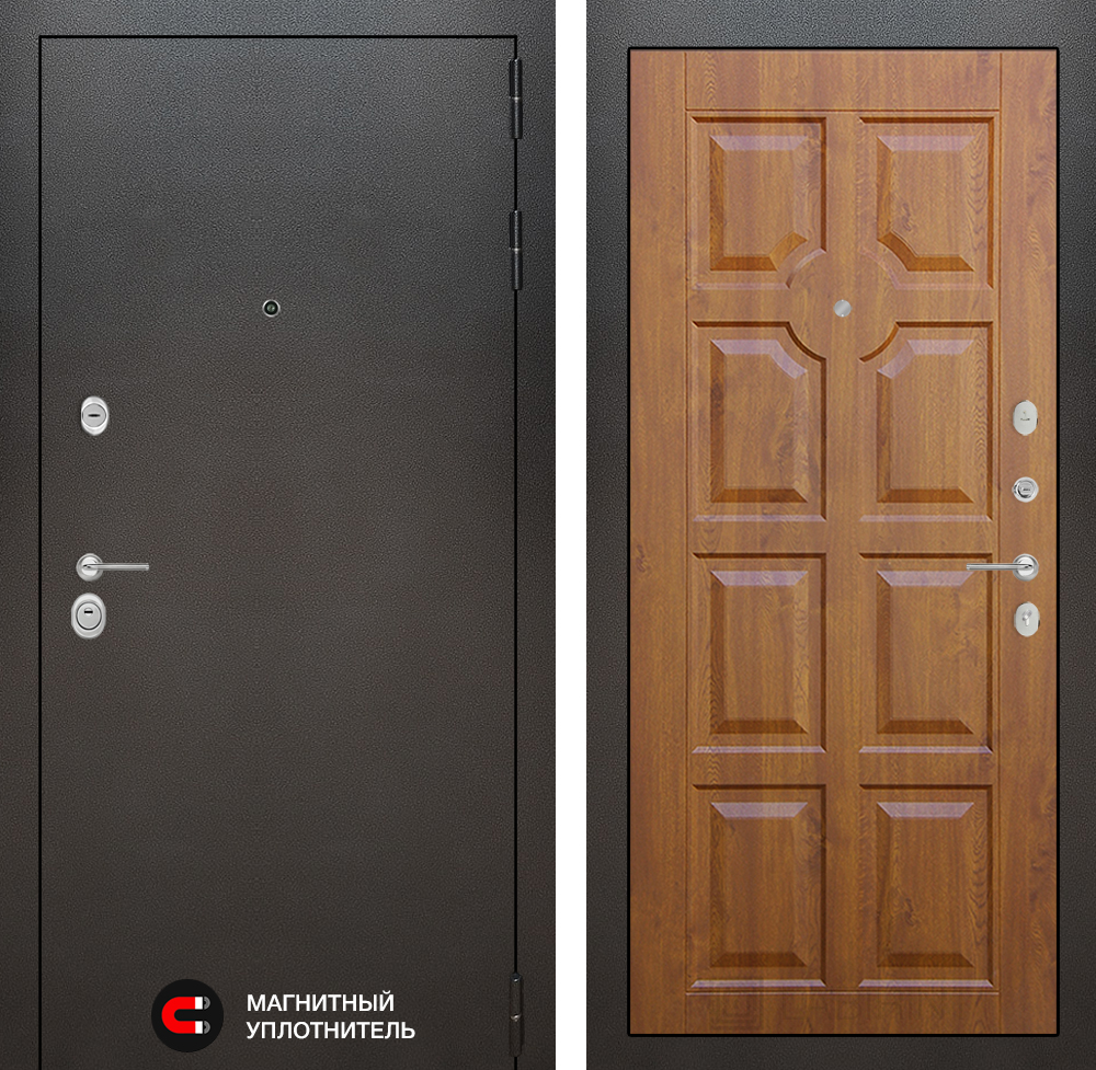 Броненакладка врезная, накладка со шторкой, глазок , дверная ручка, ночная задвижка, цилиндр ключ-вертушка (производитель не регламентируется), регулируемый эксцентрик.