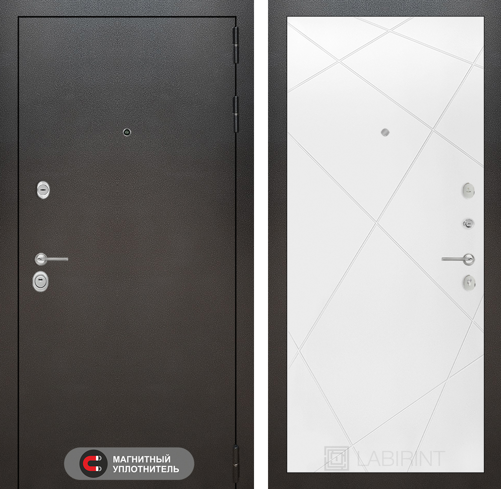 Броненакладка врезная, накладка со шторкой, глазок , дверная ручка, ночная задвижка, цилиндр ключ-вертушка (производитель не регламентируется), регулируемый эксцентрик.