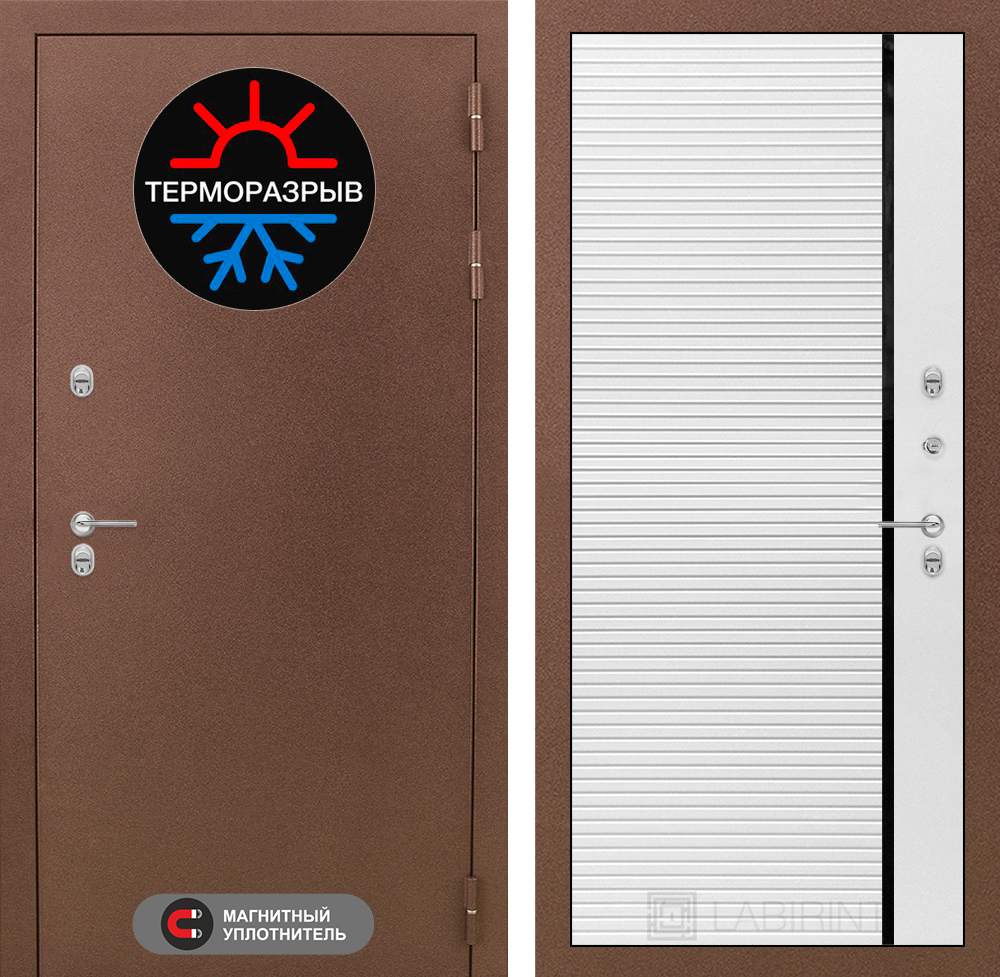 Сталь 1,5 мм, закрытый утепленный короб, усиливающие 2 ребра жесткости (вертикальные П-образные)