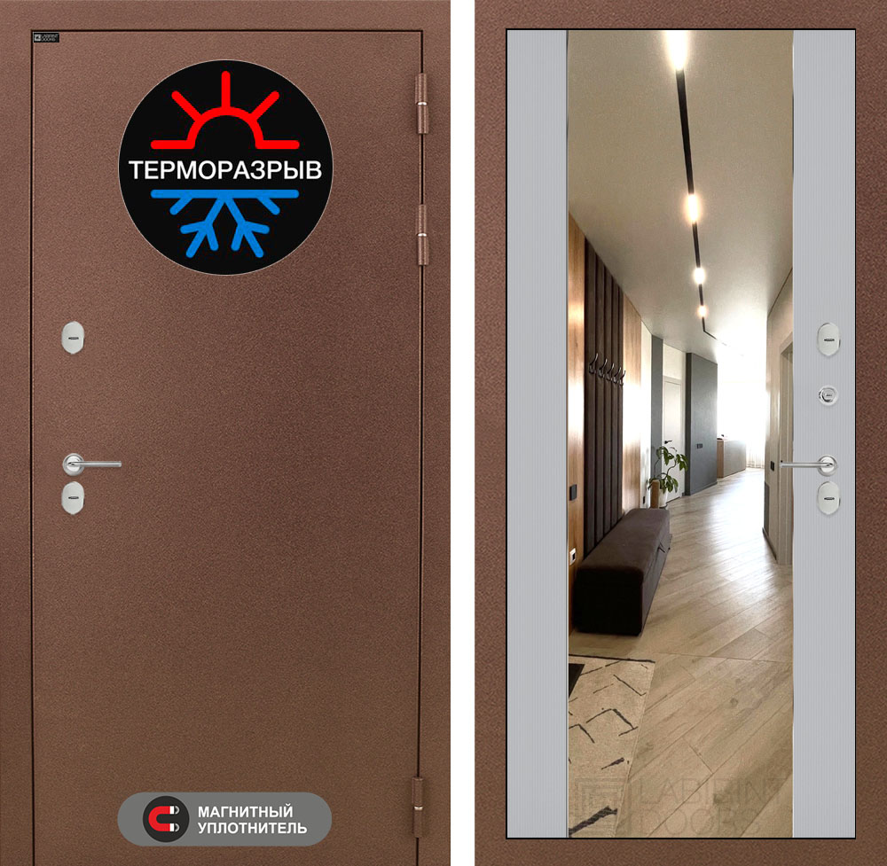 Сталь 1,5 мм, закрытый утепленный короб, усиливающие 2 ребра жесткости (вертикальные П-образные)