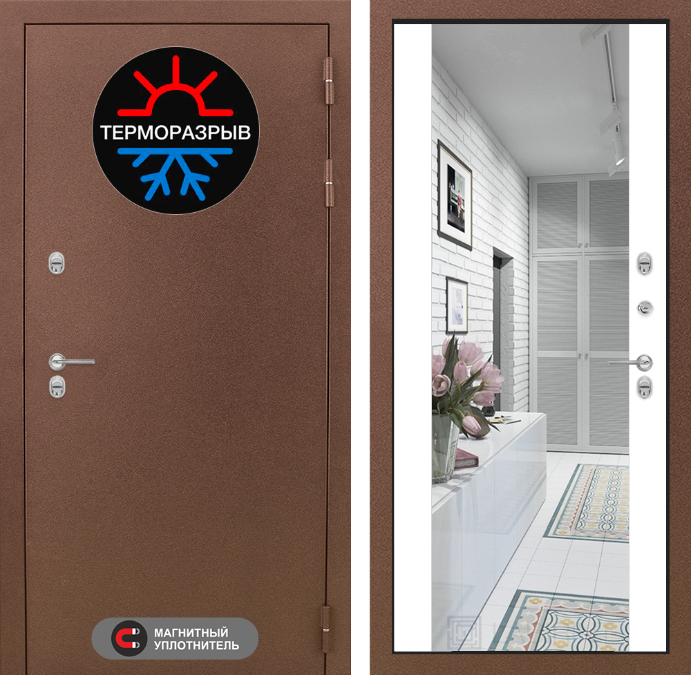 Сталь 1,5 мм, закрытый утепленный короб, усиливающие 2 ребра жесткости (вертикальные П-образные)
