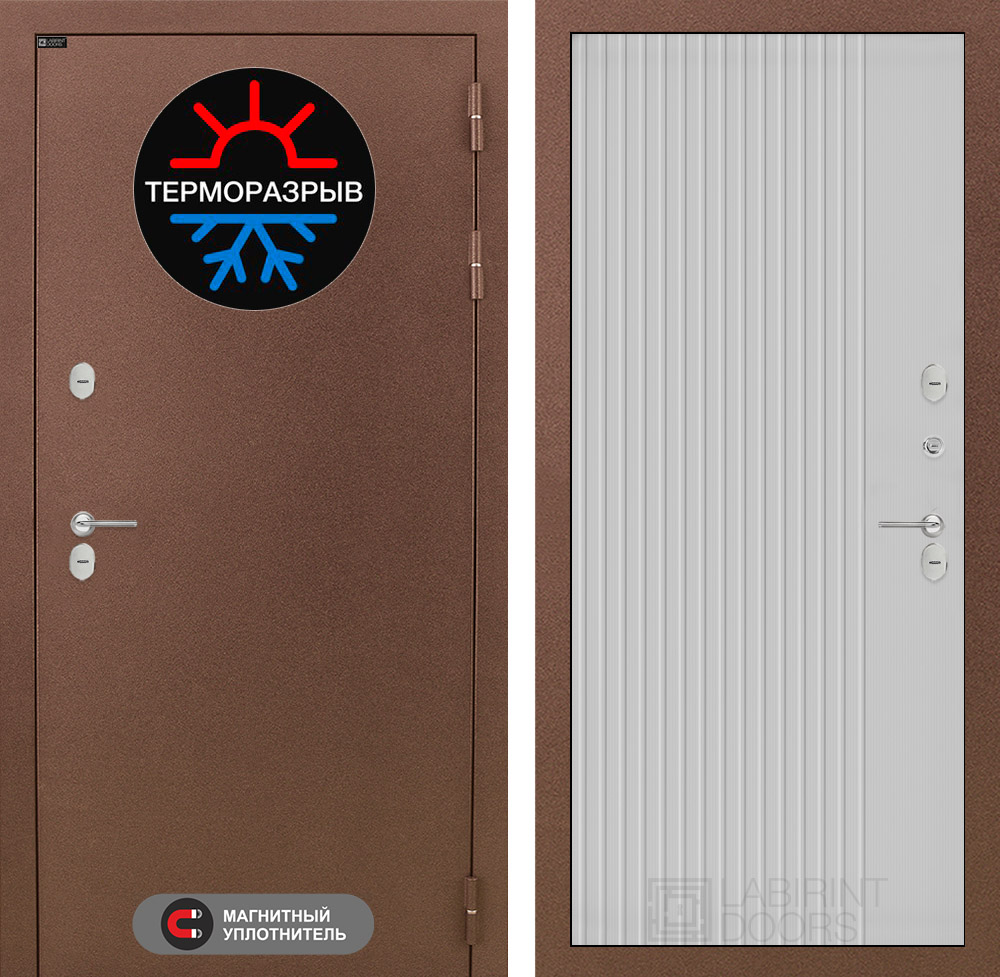 Сталь 1,5 мм, закрытый утепленный короб, усиливающие 2 ребра жесткости (вертикальные П-образные)